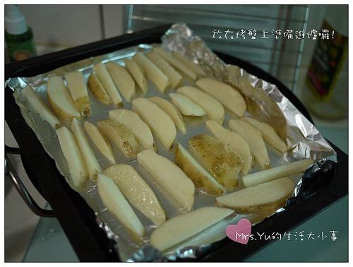 *因為是給魚丸吃的,所以我的薯條從頭到尾都不加任何調味料,如果我自己要吃會烤好後,分成兩盤,自己的那盤才會加鹽和其它香料。
