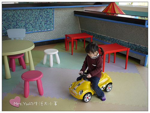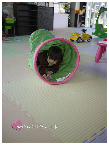 遊戲區很乾淨,也有很多東西可以玩,魚丸把鞋子放到鞋櫃後就開始探險了。
