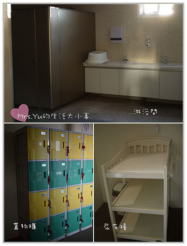 因為親水童年是主打幼兒玩水的,淋浴設備也挺不錯,連baby澡盆都有,也有置物櫃,當然也有尿布枱。
