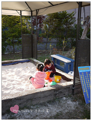 沙坑還有屋頂,不怕太陽曬~沙子則是細白的沙子,觸感也很不錯。