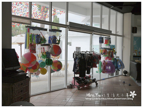 餐廳裡也有販賣水槍和泳圈等戲水設備喔!